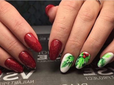 Особливо актуальний червоний голографічний акцент для святкового нейл-дизайну, адже він чудово поєднується з новорічною розписом.
