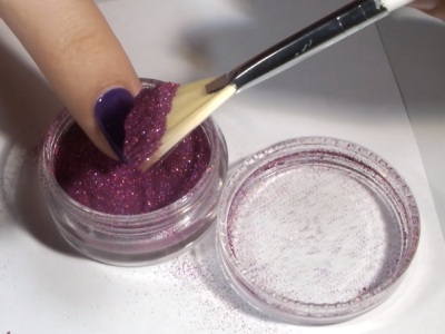 Дрібного помелу глітер відмінно лягають на липкий шар гель-лаку, гелю фарби або акрилу. Посипаєте пігментом і скрупульозно розподіляєте на всій пластині. Після стряхиваете зайве і покриваєте топом, щоб краса прослужила максимально довго.
