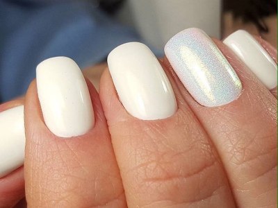 Цей пігмент можна сплутати з голографічним, але є деякі нюанси. Якщо в попередньому дизайні глітер помітно мерехтять, то призма – до такої міри мала, що її частинки неможливо побачити неозброєним поглядом. Пам’ятайте красиві візерунки бензину, якщо він потрапить у воду? Приблизно так само виглядає призма на нігтях.