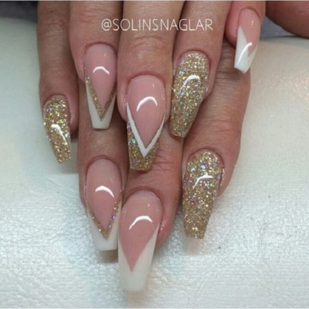 Покриття з шиммером, глітером або слюдою варто вибрати тим, хто хоче зробити довгі нарощені нігті: мерехтливі частинки додадуть манікюру додатковий шик, однак важливо не переборщити з блиском, інакше замість «елегантної розкоші» вийде ефект ласої на блискучі дрібнички сороки.