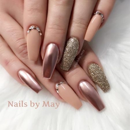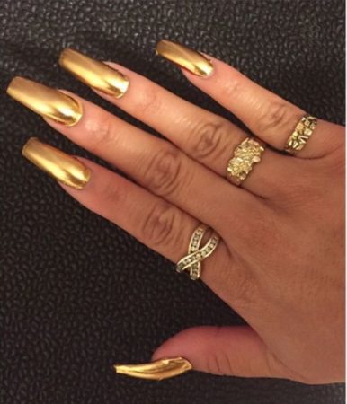 • металеві покриття – вони підійдуть як під довгі нарощені нігті, так і для більш скромних варіантів манікюру з «символічною» довжиною пластини;