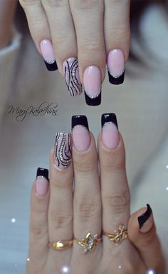 • чорні акценти – однотонні темні нігті не настільки актуальні в цьому році, а візерунки (особливо геометричні!), нанесені чорним кольором, зроблять манікюр самим модним;