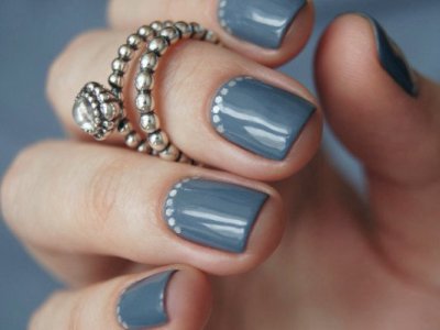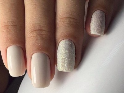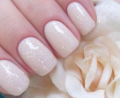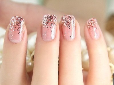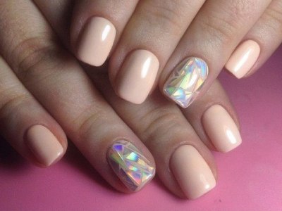 Слова зворушливої пісні Анни Герман самі приходять на думку при вигляді ніжного манікюру з блискітками і шиммерами. Блискітки на кінчиках пальців нададуть вам загадкове мерехтіння. У такому арте також необхідно триматися в рамках, тому вибирайте блиски спокійних відтінків і не надто великі, покривайте ними цілком тільки один пальчик. Невеликий блискучий акцент не дасть перейти нейл-арту в розряд надміру вигадливих або позбавлених смаку. Блискуча дзеркальна посмішка манікюрної фольги не буде зайвою і у френчі.
