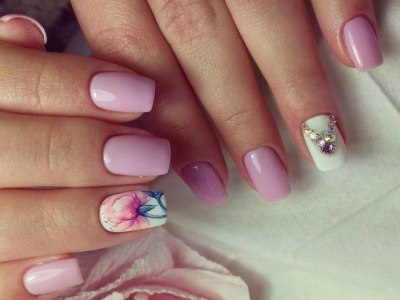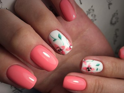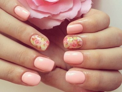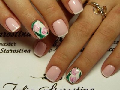 Ну і як же можна було обійти синоніми романтичності – квіти! Ніжним весняним манікюр виходить, якщо на ньому будуть квіточки. Кисть відкладіть в сторону, про ліпленні – забудьте. На коротких нігтях місце слайдеру! Красиві картинки будуть бездоганним доповненням практично будь-якого відтінку лаку, квітковий візерунок зробить нейл-арт зворушливим і піднесеним.
