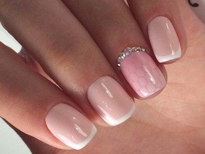 Френч давно вже став традиційним супутником романтичного і жіночного іміджу. Класична біла посмішка на рожевому трохи застаріла, але пастельна палітра лаків являє широкий простір для французького дизайну. Лимонний, «рожевий кварц», бежевий, ніжно-м’ятний, лавандовий і інші м’які кольори можна використовувати як для посмішки, так і для бази. «Посмішку» можна залишити тільки на одному ноготке або намалювати на всіх пальчиках.