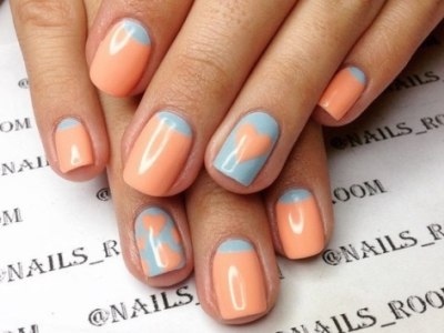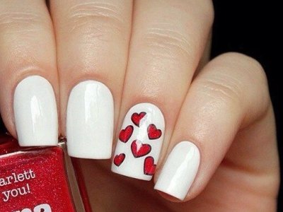 Що може бути ніжніше і миліше, ніж сердечка в дизайні нігтів? Ніжно-рожевий манікюр з сердечками – це класика жанру. Але можна вибрати будь-який відтінок з пастельної гами, озброїтися пензлем і старанно малювати свої почуття. Втім, кисть – не обов’язковий атрибут для творчої дівчини. Платівки для стемпинга, бульонки, стрази, дотс, спеціальні аплікації і прийом negative space – вірні помічники любовного дизайну.
