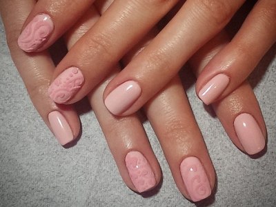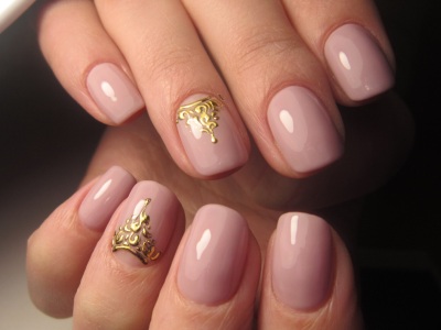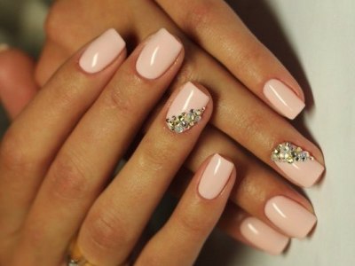 Природність = ніжність. Подружіться з «нюдовой» палітрою – і півсправи зроблено. Бежеві, тілесні, примарно рожеві відтінки, близькі до природного тону вашої шкіри, роблять руки витонченіше і тонше, а самій дівчині надають якусь беззахисність. Декор знаходиться не під забороною, але під суворим контролем. На нюдовой базі допустимо зовсім небагато стразів, наприклад, по одному на кожному пальчику або у вигляді тоненької смужки по центру. Подібний манікюр в ніжних тонах міг би прикрасити героїню творів Тургенєва.