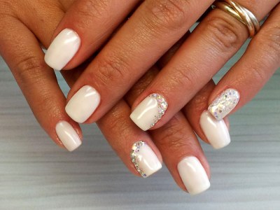 Це не тільки діаманти, але і стрази! Модні тенденції 2016-2017 сезонів диктують помірність і стриманість, але ніжний манікюр не затьмарить, наприклад, лунка з дрібних страз або сердечко з них. Погіршити і зіпсувати дизайн можна, переборщивши з камінням, їх розміром і яскравістю.