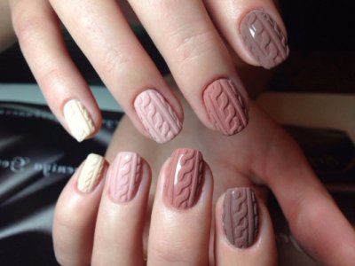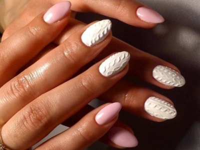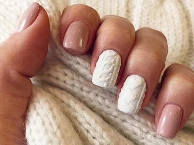 Ніжний в’язаний манікюр краще робити гель-лаком, з ним ромбики, кіски і шишечки виходять опуклими і схожими на справжню в’язку! Коли закінчите виводити візерунки, на останньому етапі посипте своє творіння акриловій чи оксамитової пудрою, і «светрик» буде по-зимовому пухнастим!