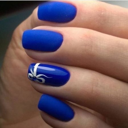 поєднання синього матового і глянсового лаку з візерунком