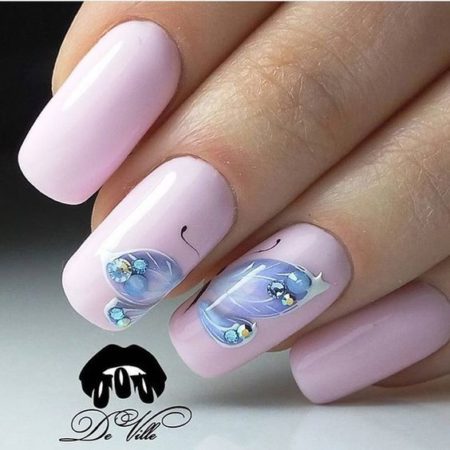 Представлені ідеї манікюру з метеликами, дизайн нігтів зі стразами і блискітками, візерунки на нігтях, нові креативні ідеї манікюру, соковитий дизайн нігтів, педикюр з візерунками та блискітками…