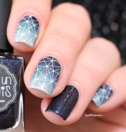 синій гель лак з блиском і візерунком