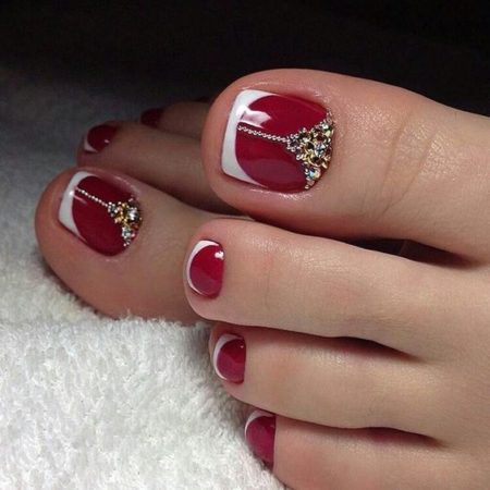 білий дизайн нігтів ніг зі стразами