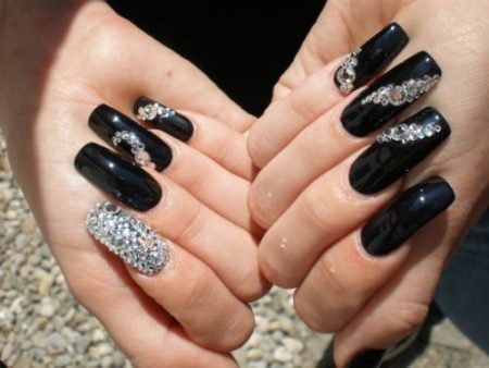 Чорно-білий манікюр зі стразами — класика жанру. Елегантний, красивий, вишуканий… Він підійде дамам будь-якого віку і професій. Крім того, такий дизайн поєднується з усіма видами одягу, відмінно доповнює вечірні образи, тобто, вибравши чорно-білий манікюр зі стразами, ви сміливо можете днем вирушати на роботу, а ввечері підкорювати святкові вечірки.