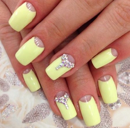 Лимонний місячний манікюр чудово виглядає в зимовий час. Це позитивний і яскравий відтінок, який прикрасить нігтики і внесе нотку сонячного тепла у будь-який образ.