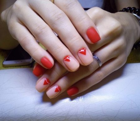 Червоний манікюр з малюнком на короткі нігті