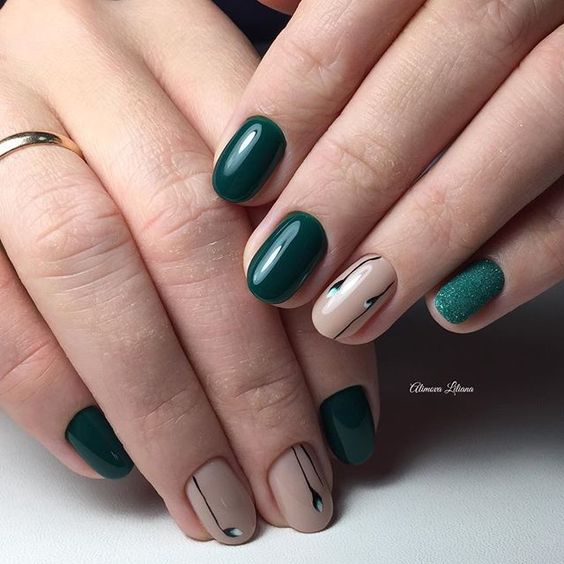 Глибокий смарагдовий відтінок виглядає благородно і витончено. Красивий манікюр гель-лак підійде як молодим, так і зрілим леді.