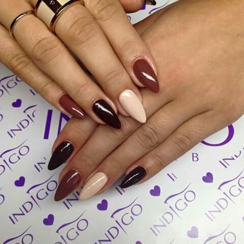 Лаконічно і елегантно: довгі нігті в декількох відтінках кавовій гами.