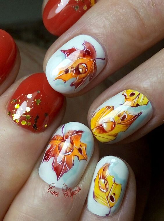 А такі позитивні та яскраві листя захочуть носити на нігтях дівчата, які зовсім не бояться уваги в свою сторону!
