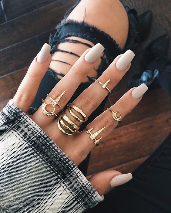 Ніколи не варто забувати про однотонний манікюр спокійного відтінку.Перевага: з такими нігтями можна носити яскраві і великі кільця.