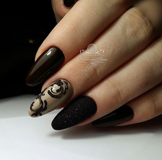 І ще трохи темних, але не похмурих фарб. Насичений сливовий колір і «оксамитові» візерунки утворюють вишуканий і елегантний дизайн нігтів, який варто спробувати цієї осені.