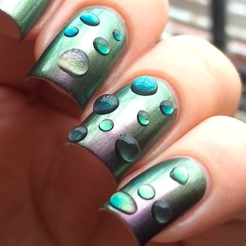 Незвичайна ідея з покриттям «хамелеон» і великими гелевими «краплями». Відмінна ідея для нетривіальною вечірки.