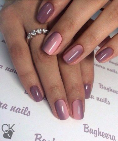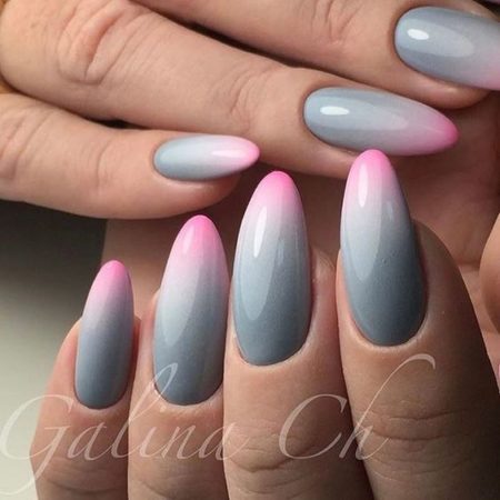 Омбре манікюр прекрасний у будь-якому виконанні і в матовому, і в глянсовому. Навіть «котяче око», «металеві», «перлинні» покриття підходять для цієї ідеї . Крім того, можна поєднувати не одну, а дві ідеї. Приміром, місячний манікюр з градацією кольорів виглядає приголомшливо!