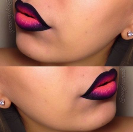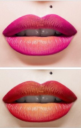 Тим, хто любить образи «погарячіше» і завжди прагне бути на модній хвилі, стилісти в цьому році рекомендують вибирати макіяж для губ омбре. І знову, актуальна ідея знайдеться для кожного: матові і глянсові текстури, пастельні і контрастні кольори — все, що завгодно душі модниці. Якщо захочеться, то можна поєднувати тон помади з відтінком нігтів — вийде досить незвичайний альянс американського манікюру (помада і гель-лак в тон) і подвійні.