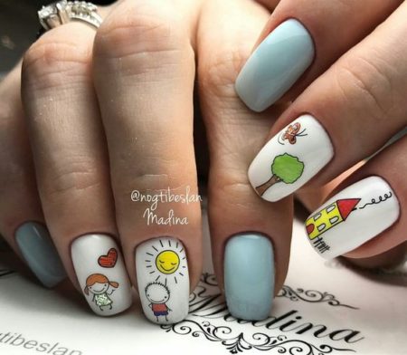 Що може дарувати більше позитиву ніж діти, їхні витівки і звичайно малюнки (іноді в самих невідповідних місцях) Перенесіть дитячі малюнки до себе на нігті і згадуйте про них, навіть якщо їм вже 25. Гарний настрій буде забезпечено.