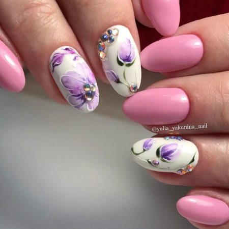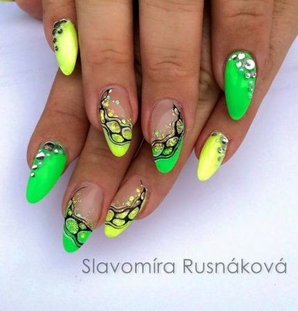 Сьогодні в огляді фото дизайну нігтів зі стразами, красивими малюнками, манікюр гель лаком, візерунки на нігтях. так само представлений манікюр на нігті середньої довжини.