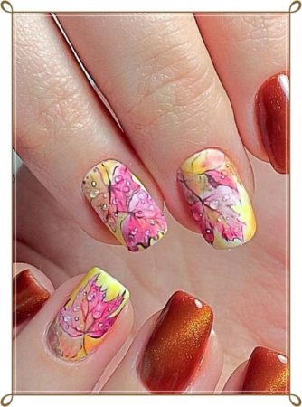 Особливо ми б відзначили шикарний дизайн виконаний на 6-му фото, автор якого на жаль невідомий, на 8-му фото Автор «Sashylya_nail», на 26 фото автор ідеї осіннього дизайну нігтів. В цілому сьогодні представлені роботи виконані на п’ять з жирним плюсом.