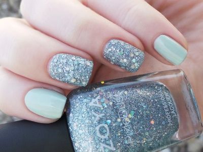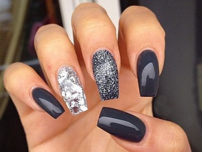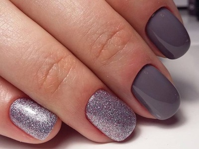 Впевненим у собі особам іноді хочеться свята в манікюрі, але тропічну яскравість вони не сприймають. У такому разі виходом стає гліттер на сірому. Дрібними блискітками посипають ніготь, зрозуміло, тільки один, і нейл-арт неодмінно звертає на себе увагу. Блискуча втирка і матовість на сусідніх нігтики утворюють ефектний дисонанс. Блискітками можна створювати градієнт. Ви можете використовувати зовсім малесенька помел, який буде таємничо поблескивать в будні дні, або брати великі пластівці «срібла» для вечірнього виходу. Вирішувати вам. Варіантів дизайну з блискітками чимало і всі вони дуже витончені, навіть якщо глітер будуть литися рікою на пальцях. У цьому весь сірий – втілення благородства і стилю.