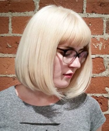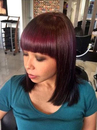 Зріз по прямій — писк 2017 року, який залишається актуальним і в 2018. Він додає образу підкреслює елегантність і бездоганний стиль. Такі зачіски більше всього підійдуть дівчатам з овальними або трикутним обличчям.