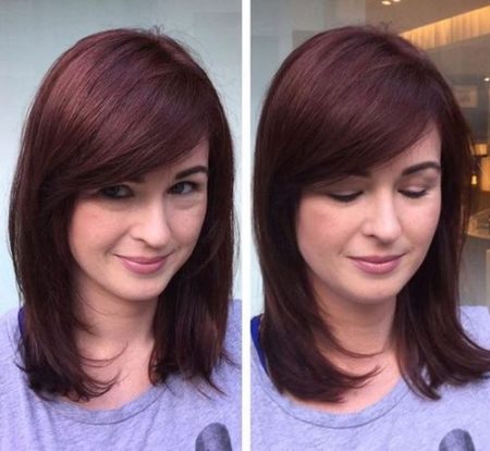 Класичне каре з чубчиком, а також стрижки за плечі виглядають жіночно і йдуть багатьом. Чубчик допоможе виправити нюанси зовнішності, такі як високий лоб або довгий ніс. Досить зробити її пишною, і недосконалості будуть не настільки помітні.