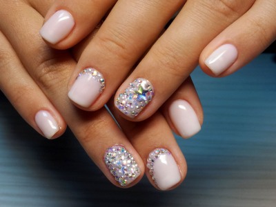 Хоч ліплення і хитромудрі композиції вже відійшли на другий план, якщо їх застосовувати зі смаком, то тренд натуральності 2016 року ви увіллєтеся. Головне тут – не перестаратися. Різними прикрасами можна надати вигляду завершеність. Наприклад, квіти у ваших волоссі і прикраси можна продублювати в манікюрі. Акуратними лепесточками з акрилу, блискітками, намистинами, модними в цьому сезоні смужками і стразами краще прикрасити тільки ніготь на безіменному пальці, тоді імідж ніжною нареченої ви не порушите. Є лише істотний мінус: такий манікюр зазвичай недовговічний, тому що після урочистості скоро доведеться робити корекцію і прибирати зі сцени, тобто нігтя, декорації.