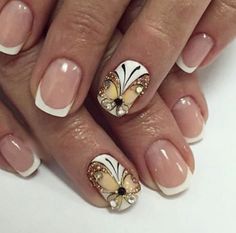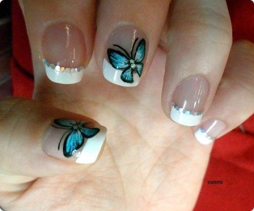 Другий варіант – це манікюр з метеликами. Оскільки ці створення в багатьох культурах уособлюють кохання, романтику і сімейні цінності, даний узор буде вдалий у весільному антуражі.