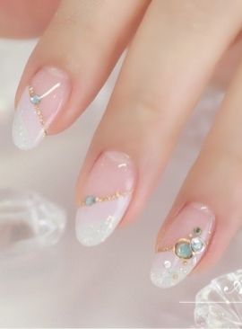 Не зайвими будуть стрази і блискітки: невелика кількість мерехтливих елементів буде чудово грати в променях вранішнього сонця і зробить весільний манікюр ще більш весняним і вишуканим.