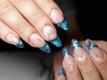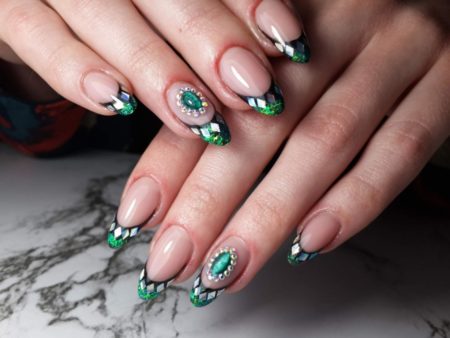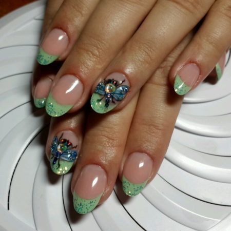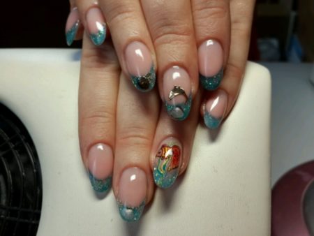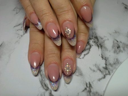 • міленіум – край нігтя прикрашається блискітками різних розмірів;