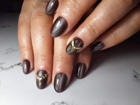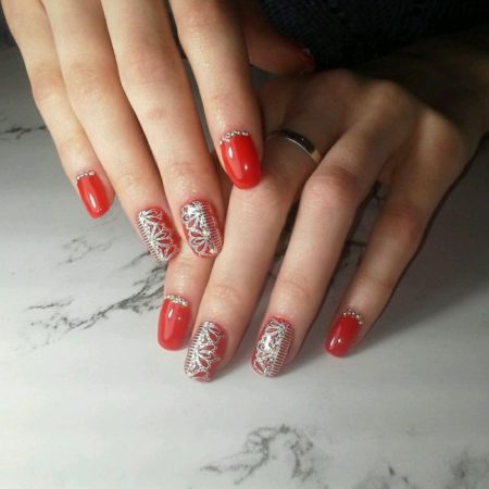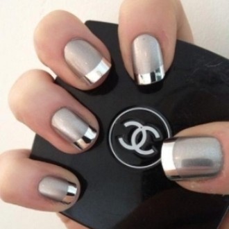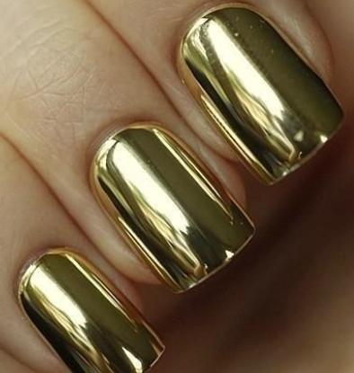 Металевий манікюр виглядає футуристчно і незамінний при створенні яскравого святкового образу. Цей дизайн виглядає актуально в будь-який час року, особливо, якщо виконано з використанням фольги традиційних, золотих і срібних відтінків.