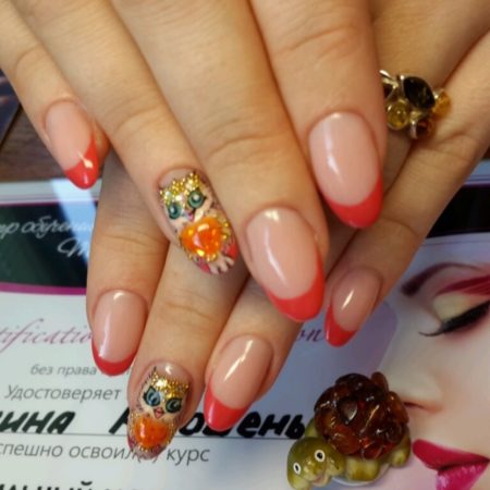 • оригінальний – замість класичної смужки, на краю нігтя може бути будь-яка зображена фігура.