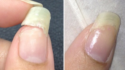 Вуаля! Як новенький. Тепер можна фарбувати нігті як зазвичай. Подивіться на картинку: