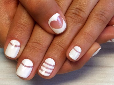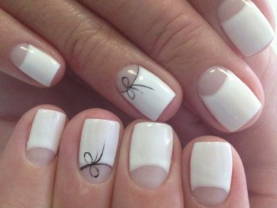 - Лунка може бути відокремлена однієї тільки лінією. На кордоні лунулы ще до початку фарбування приклеюється тонка смужка. Всю поверхню покривають одним лаком, а після висихання смужку прибирають.