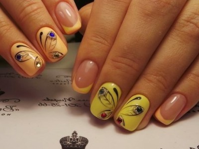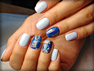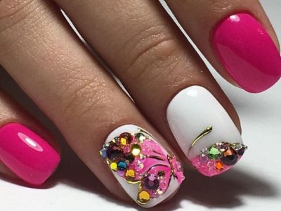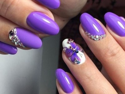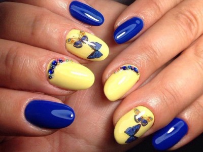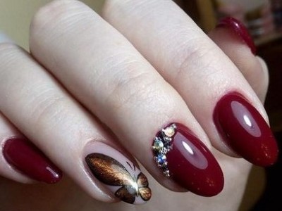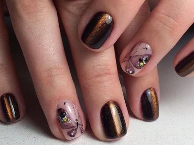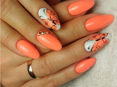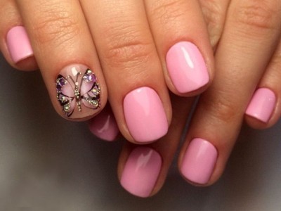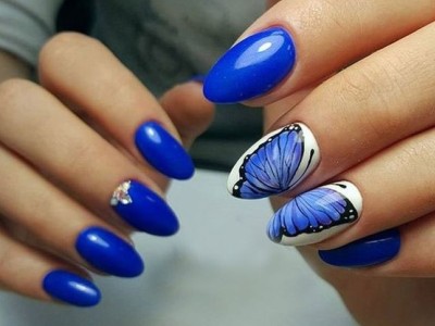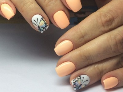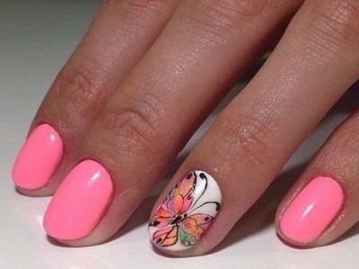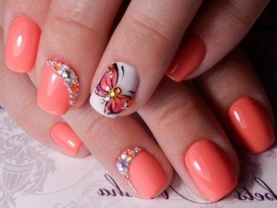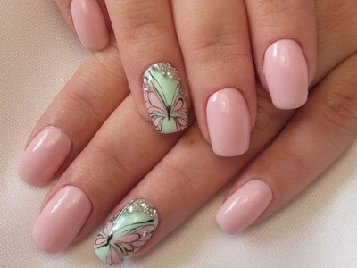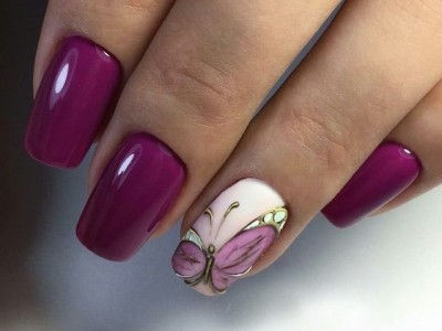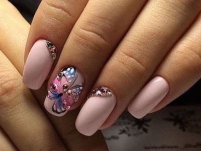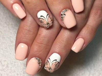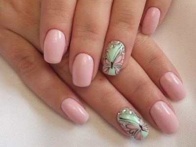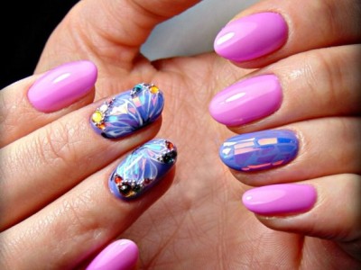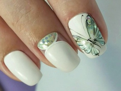 Одного цілого – це завжди чудово! А вже якщо це чудова метелик, і зовсім задумка для нейл-арту відмінна! Як правило, метелика малюють на середньому і безіменному пальцях. Базу вибирайте нейтрального світлого кольору, щоб ваша ідея добре проглядалася. Зате для оформлення крилець можна не скупитися, використовуйте камені-самоцвіти, яскраві фарби, можна спробувати контур крил виділити литтям. Такий дизайн нігтів з метеликами виглядає як справді тонка робота, їм можна пишатися!