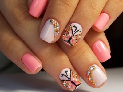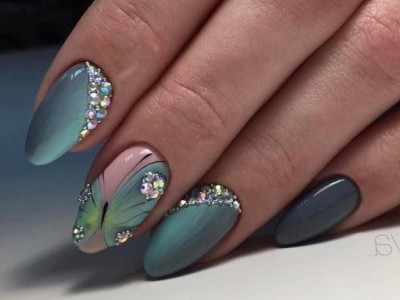 Як ви вже зрозуміли, цей нейл-арт декор тільки вітає. Прикрашайте їм крильця або лунки, можна заповнити красивими камінцями хоч весь розмах крил, гірше не стане! Тільки пам’ятайте про міру, якщо вирішили унизать метелика стразинами, то не усыпайте ними всі інші нігтики, це буде зайвим і позбавленим смаку.
