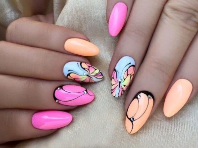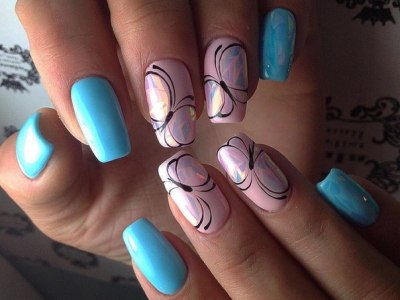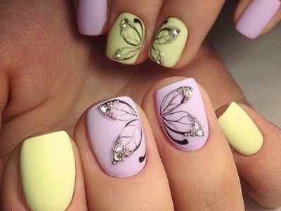 - Кольори для манікюру використовують природної гами, в якій метелики зустрічаються в природі. В основному їх зображують в райдужних тонах, популярний також червоний, лимонний відтінки. Більшу популярність набирає чорний колір, але з ним потрібно застосувати всю свою майстерність, щоб метелик не здавалася важкою.