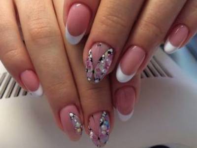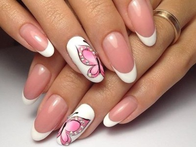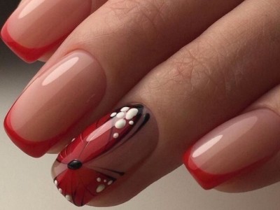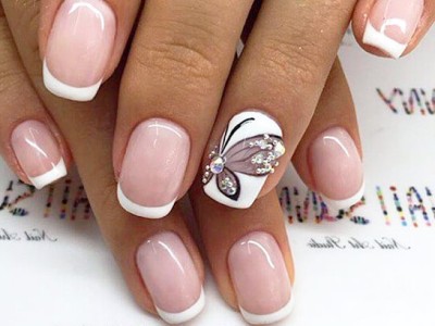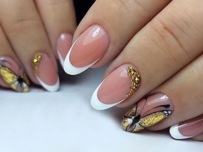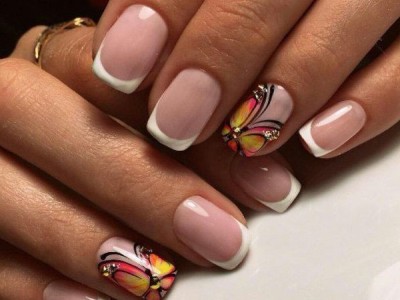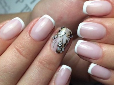 Французький манікюр той ще хамелеон! І нестаріюча класика, яка входить у симбіоз з усіма на світі видами нейл-арту. Метелика зазвичай малюють на одному або двох нігтики, а на інших виводять «усмішки». Колір, яким оформіть крила, можна продублювати на «усмішках», такий хід зробить френч з метеликами дуже гармонійним.