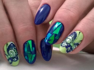 Забудьте на час про агресивний арте, де на чорному хижо поблискують «осколки». Спробуйте прикрасити ними ажурні крила метелика, ось побачите, це буде чудово. Крильця будуть «прозорими», і в них немов заплутаються промінчики сонця! Приютите таку красу на своїх нігтики і милуйтеся нею кожен день.