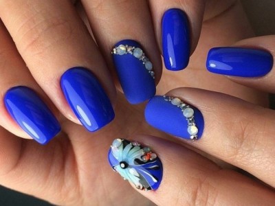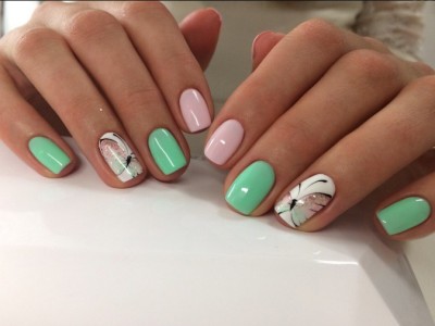 Найбільш вигідним арт стане, якщо всі нігті опиняться в моно-кольорі, а два з них будуть залучати до себе увагу завдяки чудовому витвору.