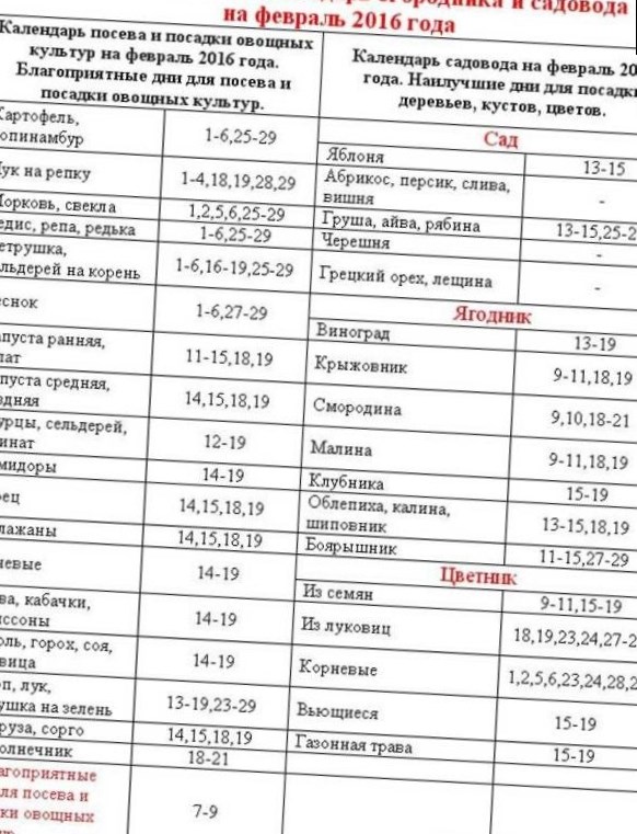 Слід зазначити, що нижче представлений посівної місячний календар садівника-городника на лютий 2017 року, враховує всі перераховані вище поради і