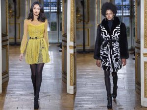 Прекрасна тенденція, що перейшла з попередніх сезонів, — поєднання різних фактур в одній речі: оксамиту з шкірою, мережив з щільною тканиною для верхнього одягу, шифону з шкірою і т. д.